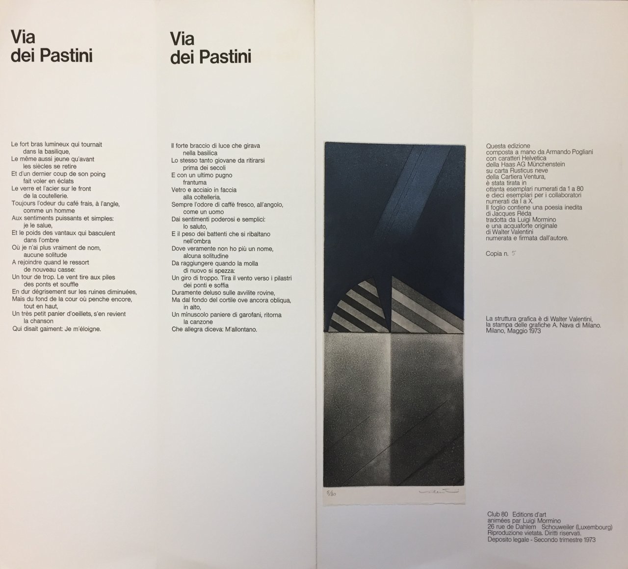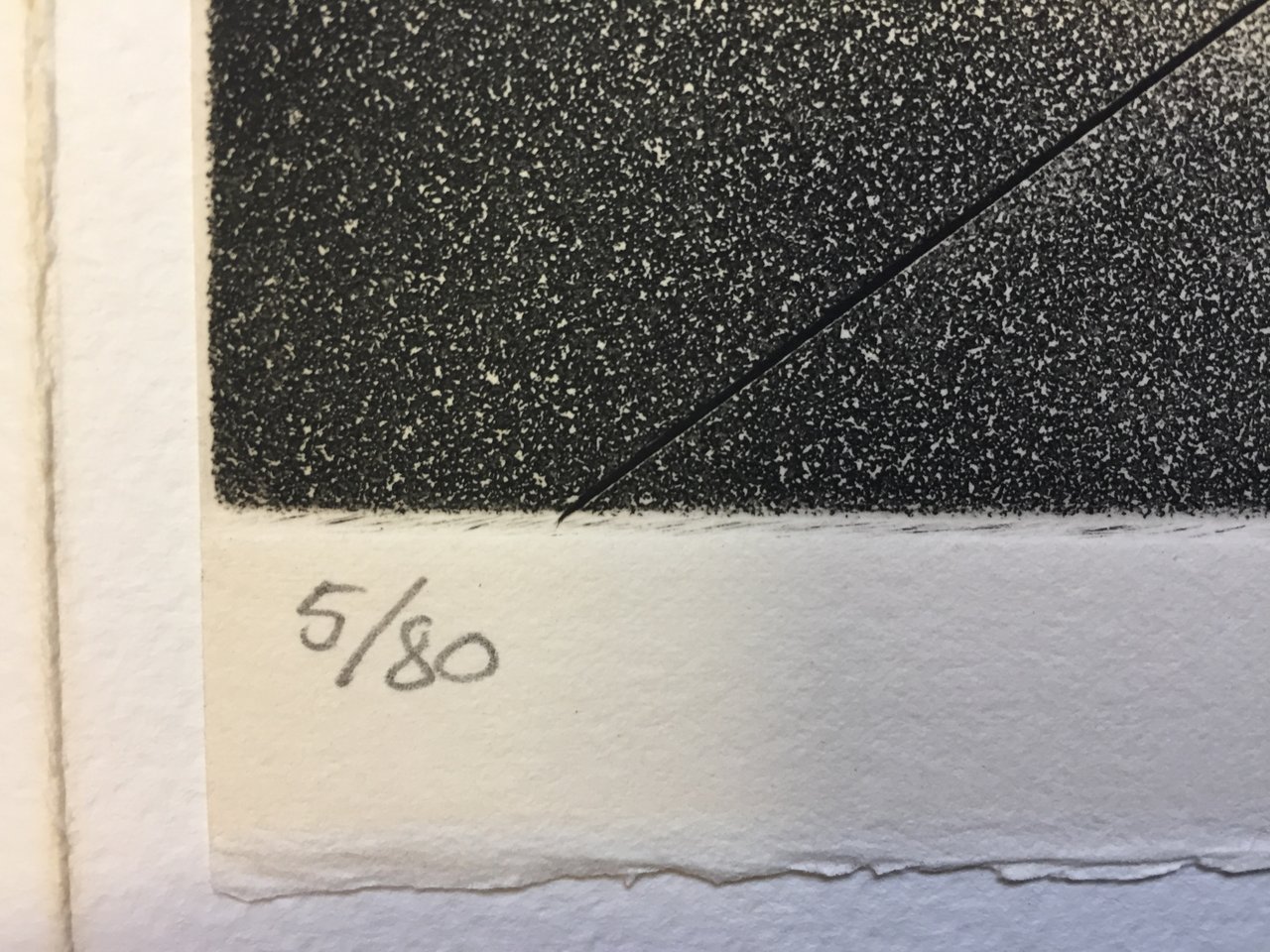 Tiratura 5/80. Scheda con dedica del poeta Reda. 80 ed. d'Arte acquaforte e acquatinta stampa cm. 17,9 x 44 - cartellina 80 x 70 Buono (Good) Buon es., piccole macchie.