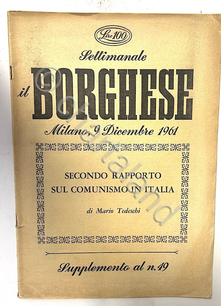 Settimanale Il Borghese dicembre 1961 Secondo rapporto sul comunismo in Italia | Libri antichi e moderni |