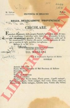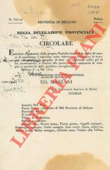 Belluno, 12 gennaio 1839, cm. 21 x 30, Circolare (gore).