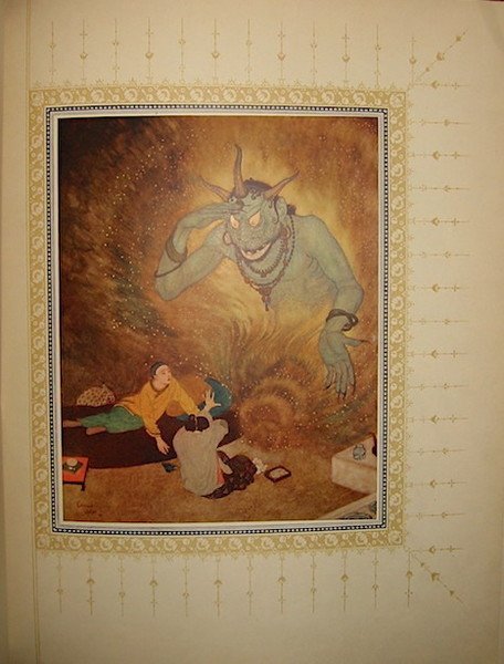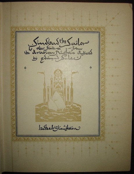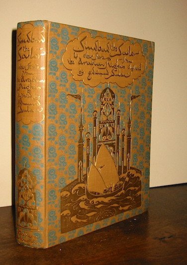 4to (cm. 28), 222 pp. con alcune ill.ni in nero n.t. e 23 tavv. a colori protette da velina su carta patinata applicata (di cui una in antiporta). Testo entro ricche cornici ornate. Bella legatura editoriale in piena tela figurata a colori. Esemplare in eccellente stato di conservazione. Prima edizione. Oltre a ‘Sinbad the Sailor’ le altre storie contenute nella raccolta sono ‘Aladdin and the Wonderful Lamp’, ‘The Story of the Three Calendars’ e ‘The Sleeper Awakened’.