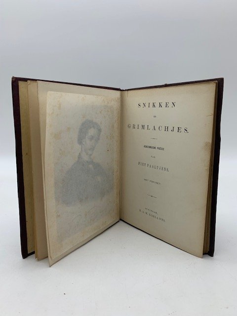 In 16 (cm 11,5 x 15,5), pp. XVI + 91 + (3) con un ritratto dell'Autore in litografia all'antiporta. Firma alla prima carta bianca. Legatura editoriale in piena tela rossa con nome dell'Autore in oro al piatto anteriore e titolo oro al dorso. Edizione originale, rara, di questa raccolta di componimenti poetici dello scrittore Francois HaverSchmidt (1835-1894), che si firma con lo pseudonimo di Piet Paaltjens. La data di stampa non compare al frontespizio ma al fono dell'introduzione in romani. Questa raccolta occupa un posto centrale nella poesia romantica olandese pur avendo caratteristiche peculiari: da un lato i componimenti sono intrisi di malinconia, tristezza e pessimismo esistenziale, dall'altro lato si caratterizzano per l'ironia - e autoironia - dello scrittore, come si evince dallo stesso titolo che tiene insieme i due elementi ovvero "singhiozzi e sogghigni" (sobs and sneers). "In this poems Piet Paaltjens reveals himself a sentimental type who can cope with his melancholy only by suppressing his sensitivity, particularly in the matters of heart, with a bitter laugh. Almost every sob - and a good many tears flow - demands a sneering counterpoint.For all the ridicule and exaggeration, HaverSchmidt employs an extensive arsenal of rhetorical devices in order to draw as vivid a portrait as possible of the unhappy poet" (Theo Hermans, A Literary History of the Low Countries, 2009, p. 449). Francois HaverSchmidt studio' a Leida, poi divenne predicatore. In seguito alla morte della moglie e ad una grave depressione che ne segui', si suicido'.