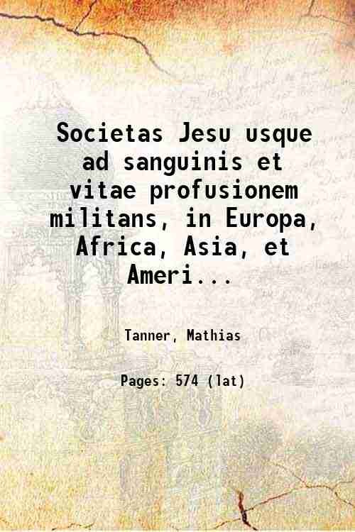 Societas Jesu usque ad sanguinis et vitae profusionem militans, in Europa, Africa, Asia, et America, contra gentiles, Mahometanos, Judaeos, haereticos, impios, pro Deo, fide, Ecclesia, pietate. Sive, Vita, et mors eorum, qui ex Societate Jesu in causa fidei, & virtutis propugnatae, violenta? morte toto orbe sublati sunt 1675 | Libri antichi e moderni | Tanner, Mathias