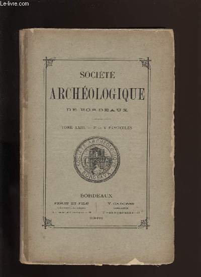 Société archéologique de Bordeaux - Tome XXIII - Fascicule n° 3 et 4