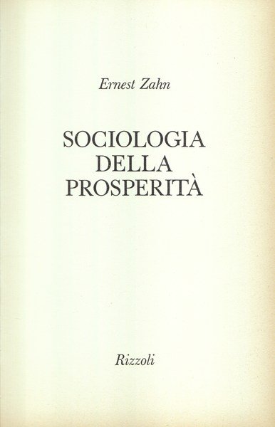 Sociologia della prosperità | Libri antichi e moderni | Ernest Zahn, ,Ernest Zahn