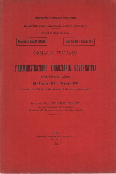 Somalia italiana - L'amministrazione finanziaria governativa | Libri antichi e moderni | Francesco Leonetti