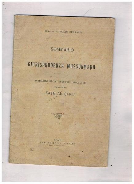 Sommario di giurisprudenza mussulmana. Riassunto delle principali disposizioni contenute nel Fath Al-Qarib. | Libri antichi e moderni | Bertazzi Roberto.