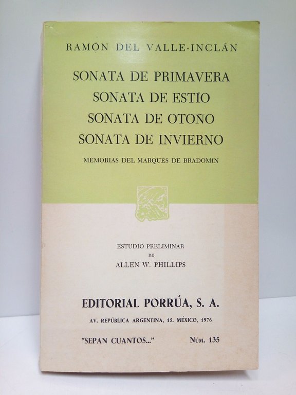 Sonata de Primavera; Sonata de Estío; Sonata de Otoño; Sonata de Invierno: Memorias del Marqués de Bradomín / Estudio preliminar de Allen W. Phillips | Libri antichi e moderni | Valle Inclan, Ramón De