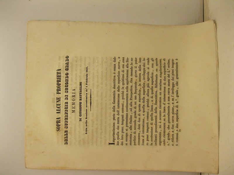 Sopra alcune proprieta' delle superficie di secondo grado. Memoria letta nella Sessione accademica de' 4 febbraio 1857 | Libri antichi e moderni | Battaglini Giuseppe