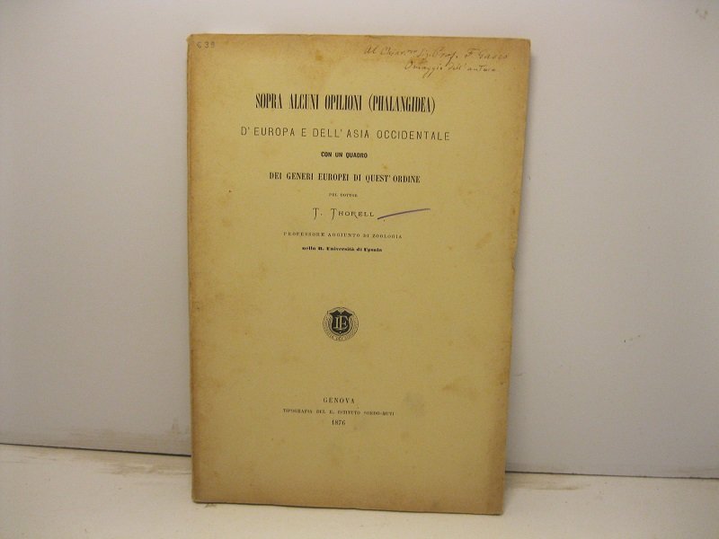Sopra alcuni opilioni (phalangidea) d'Europa e dell'Asia occidentale con un quadro dei generi di quest'ordine | Libri antichi e moderni | Thorell T.