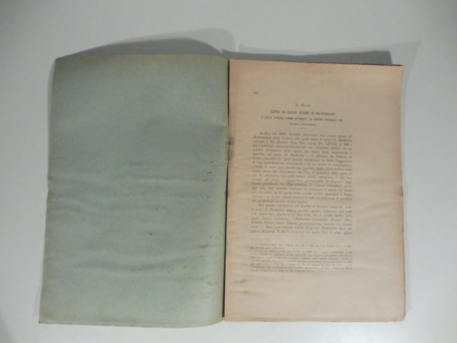 In 8 (cm 17,5 x 25), pagine numerate da 208 a 222 + (1). Brossura muta coeva con timbro di ex possesso al piatto anteriore e dedica autografa dell'Autore. Estratto editoriale dalle Memorie della Societa' entomologica italiana.