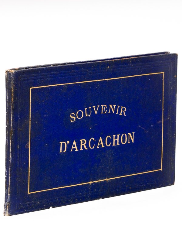 1 album format à l'italienne (20 x 13,8 cm) pleine percaline bleu éditeur, 11 photos format 9 x 15 cm contrecollé sur support en accordéon, s.d. [ circa 1870-1890 ] Rappel du titre complet : Souvenir d'Arcachon [ Album de photos anciennes : Vue générale prise du Casino - Vue générale du Casino - Le Casino - Le Buffet de la Gare - La Plage - Le Phare - Le Grand Hôtel - Le Château de Mr. De Gannes - La Passerelle - Le Belvédère - Notre-Dame d'Arcachon ] Bon état (qq. petites usures, bon exemplaire par ailleurs).