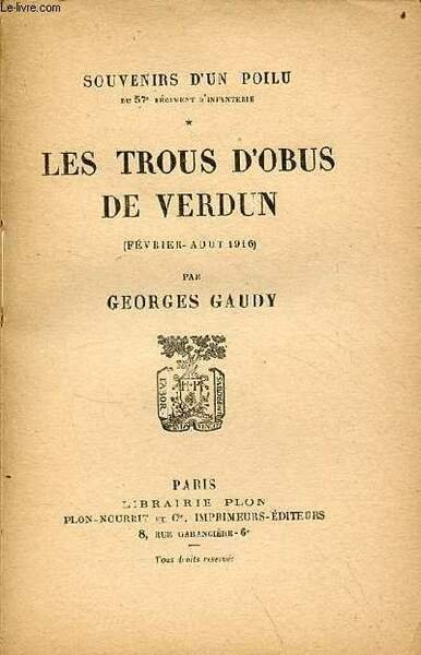 Souvenirs d'un poilu du 57e régiment d'infanterie - Les trous d'obus de Verdun (février-aout 1916). | Libri antichi e moderni | Gaudy Georges