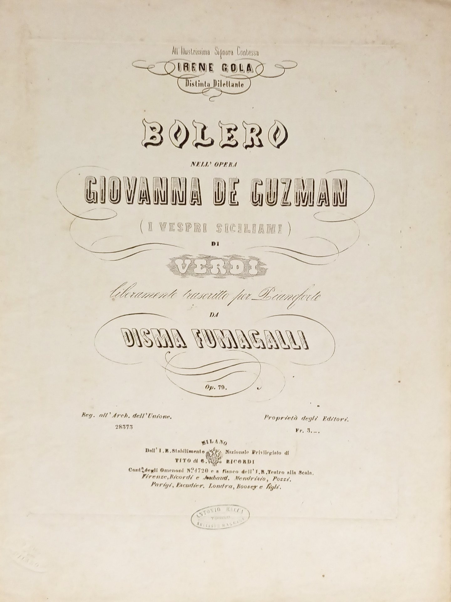 Spartiti - Bolero nell'Opera Giovanna De Guzman di Verdi - Piano di D. Fumagalli | Libri antichi e moderni |