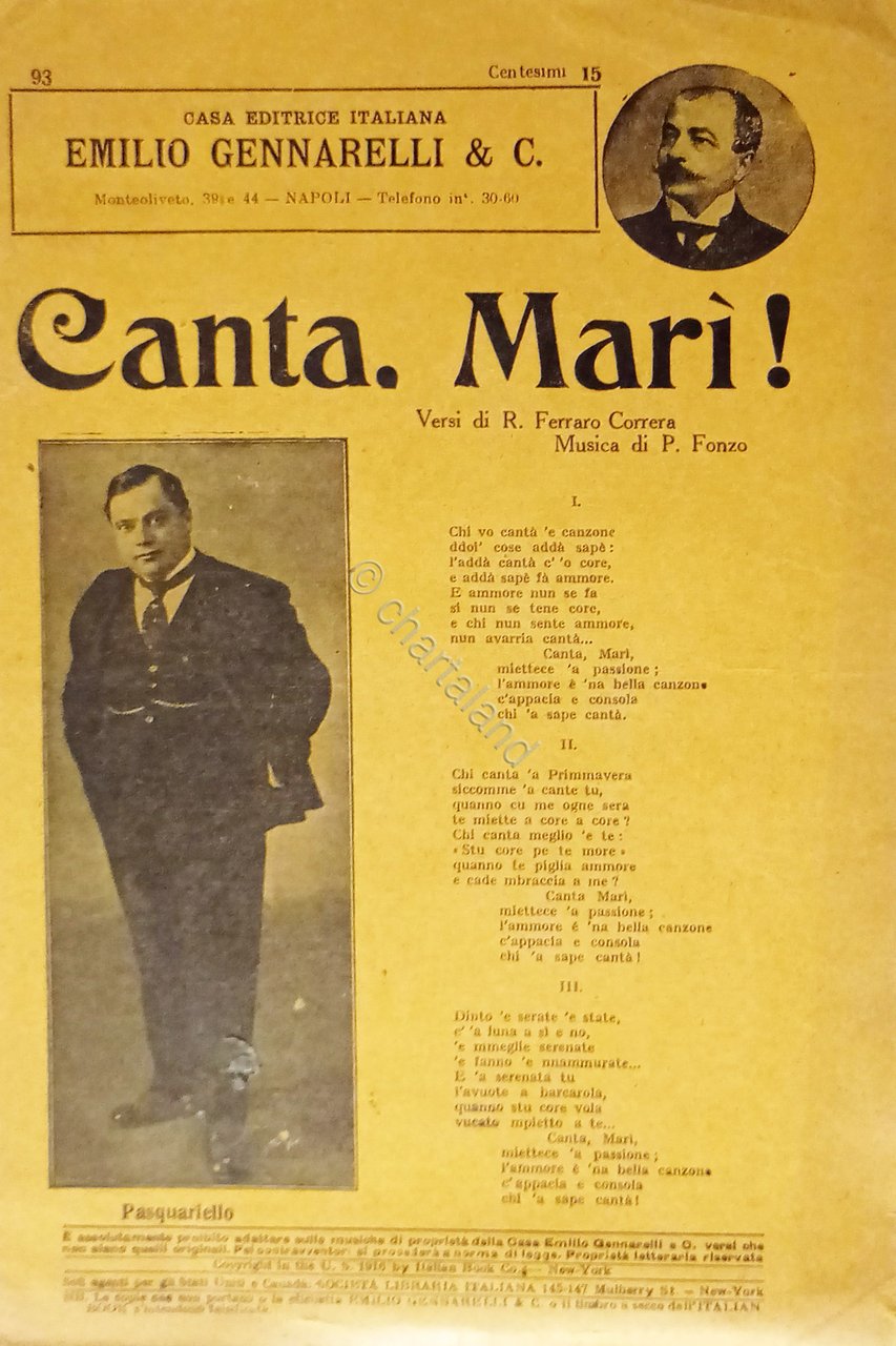 Spartiti - Canta, Mari! di R. Ferraro Correra e P. Fonzo - Pasquariello - 1916 | Libri antichi e moderni |