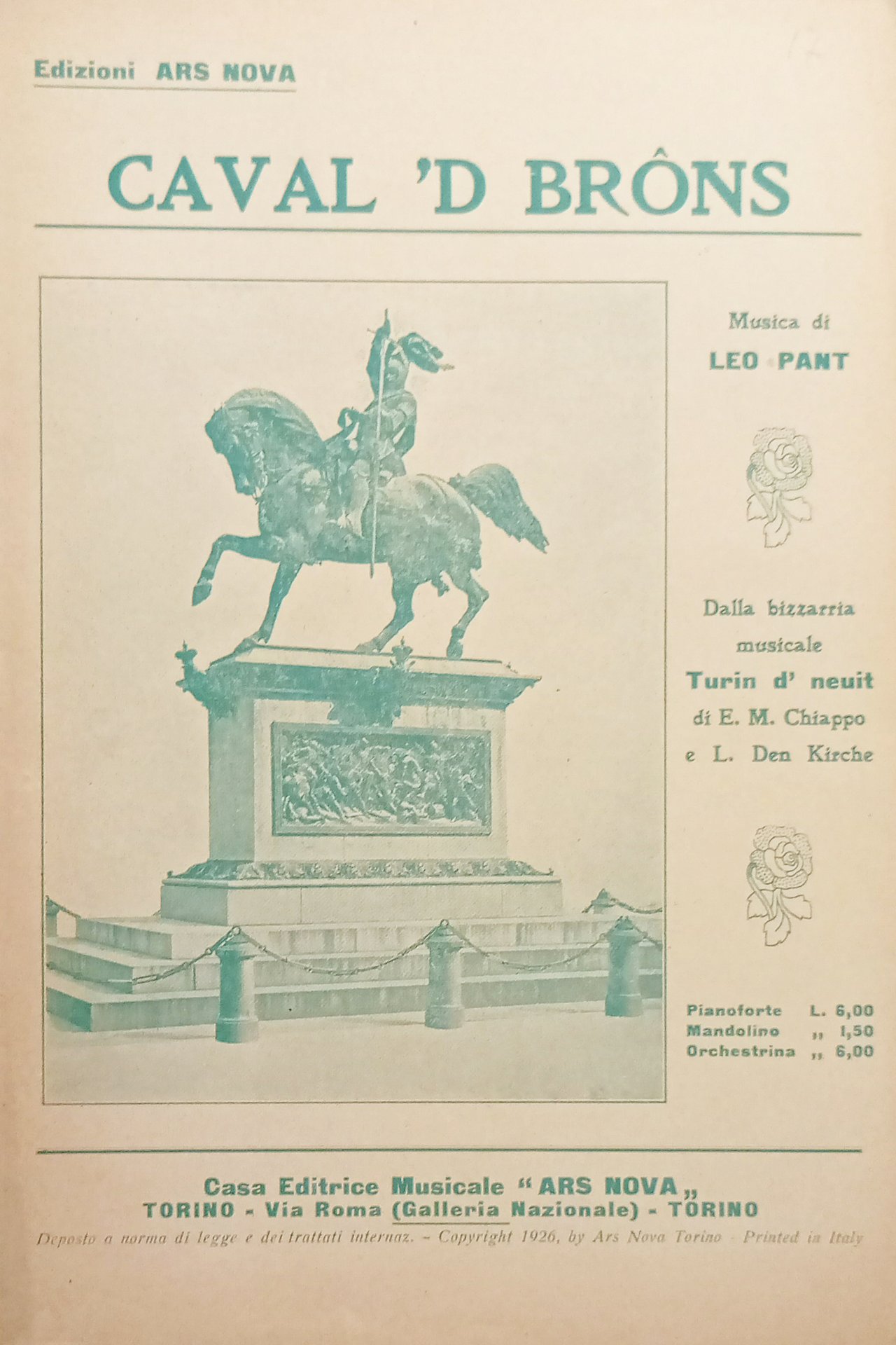 Spartiti - Caval 'd Brons di L. Pant - Tempo di Marcia - 1926