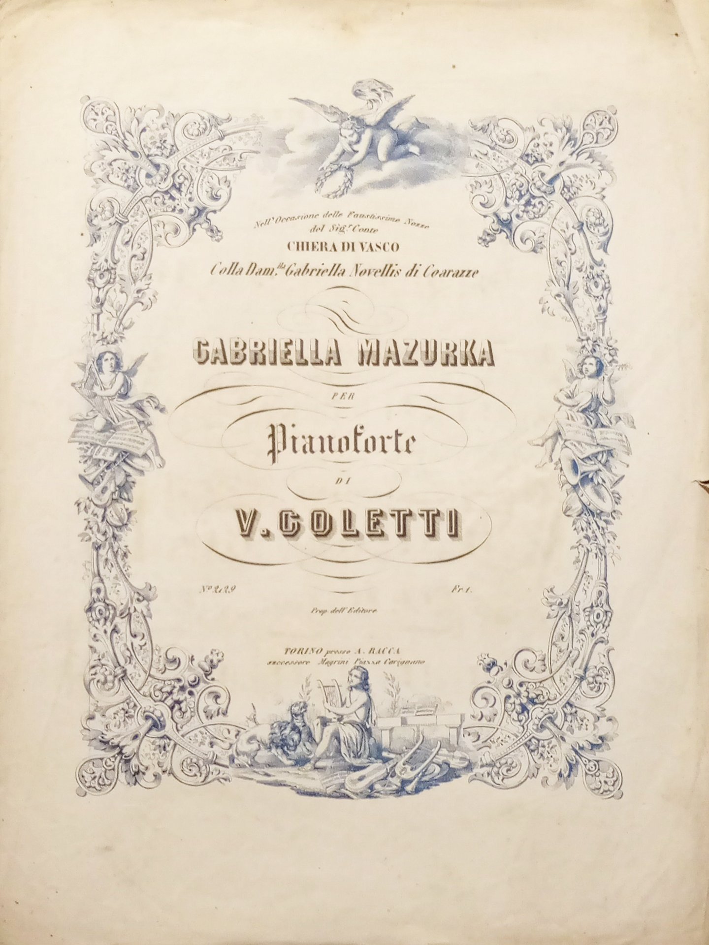 Spartiti - Gabriella Mazurka per Pianoforte di V. Goletti
