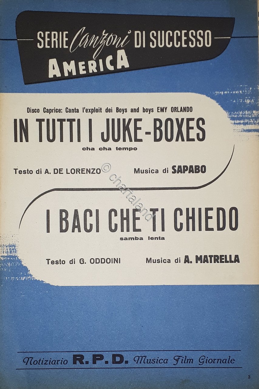 Spartiti - In tutti i Jukeboxes - I baci che ti chiedo - 1960