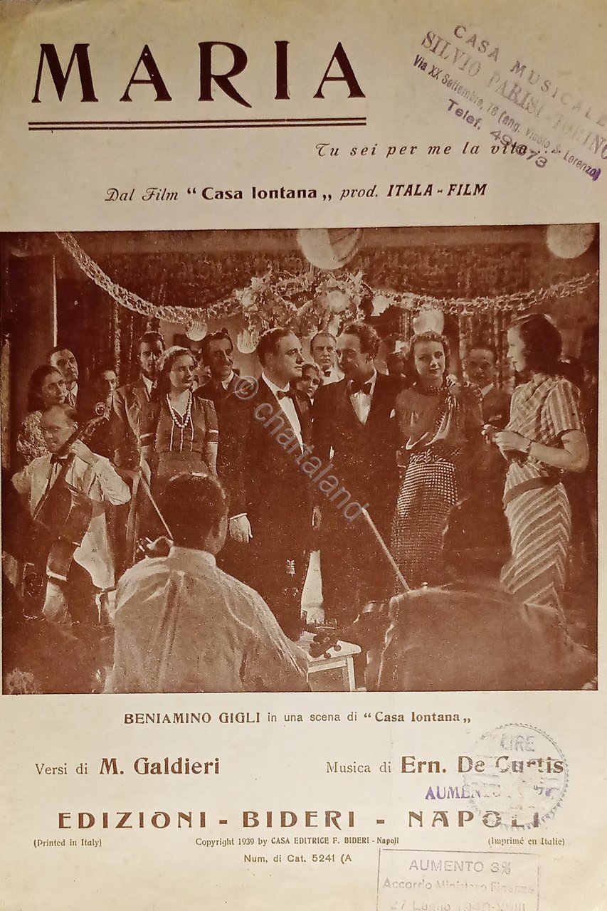 Spartiti - Maria - Tu sei per me la vita dal Film Casa Lontana - 1939