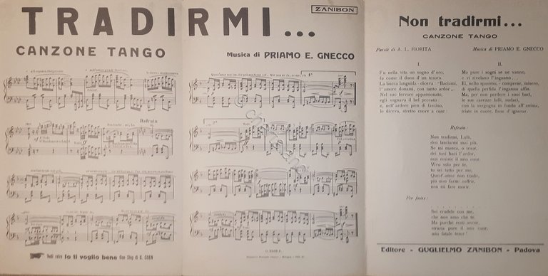 Spartiti - Non tradirmi - Canzone Tango di Priamo e. Gnecco - ed. 1932