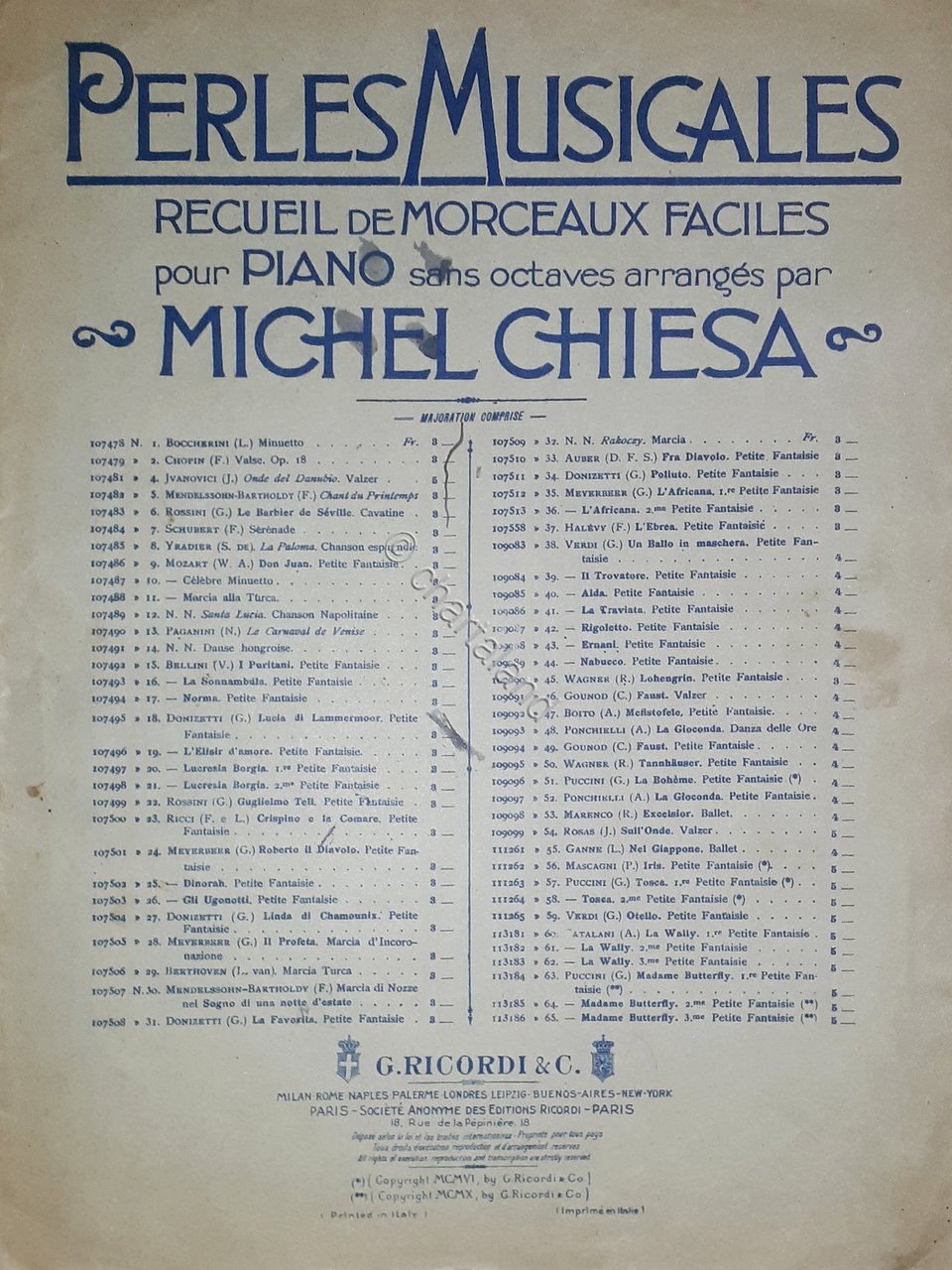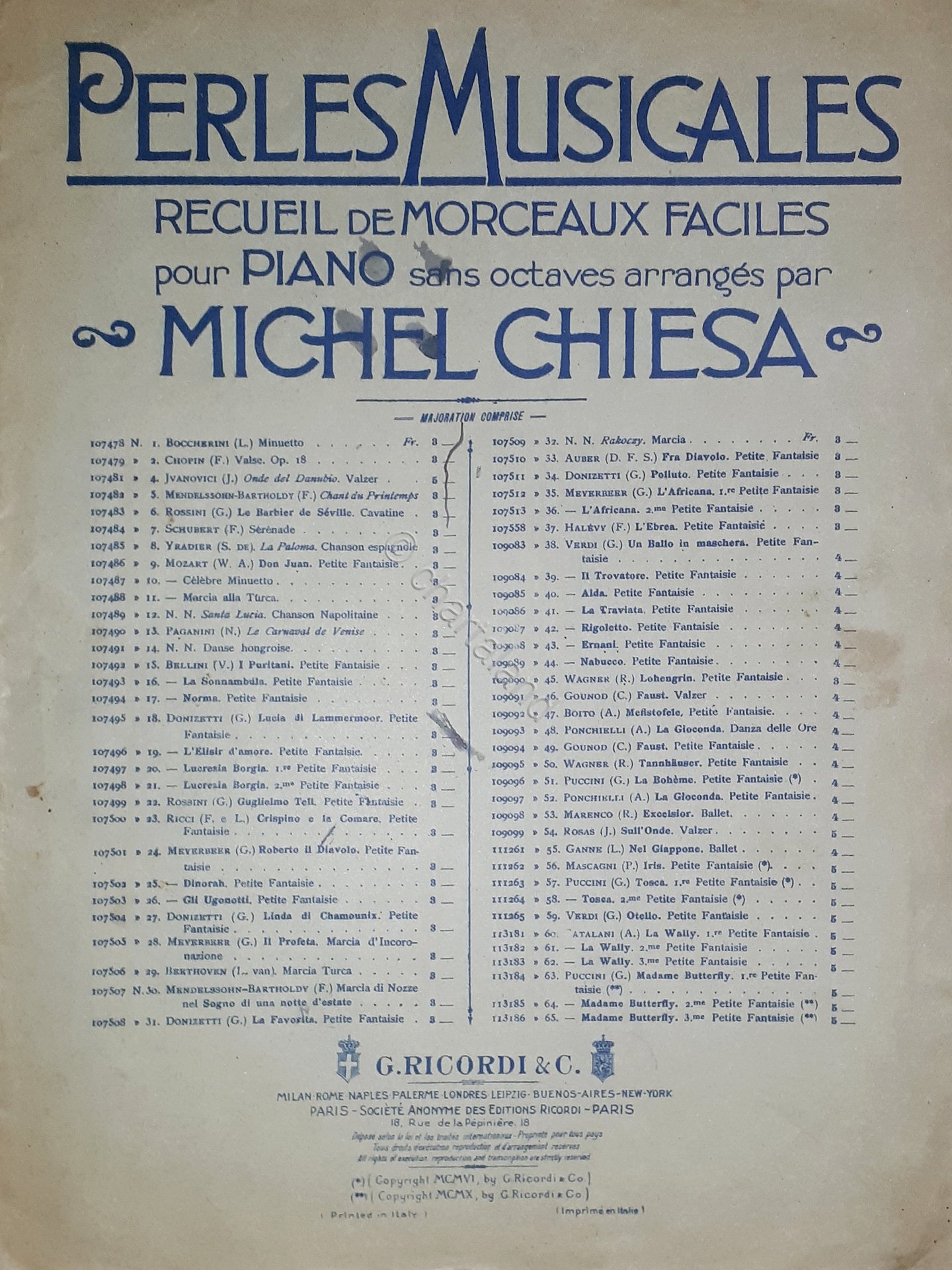 Spartiti - Norma di V. Bellini pour Piano par M. Chiesa Testo in lingua francese Pagine - 3 Condizioni molto buone
