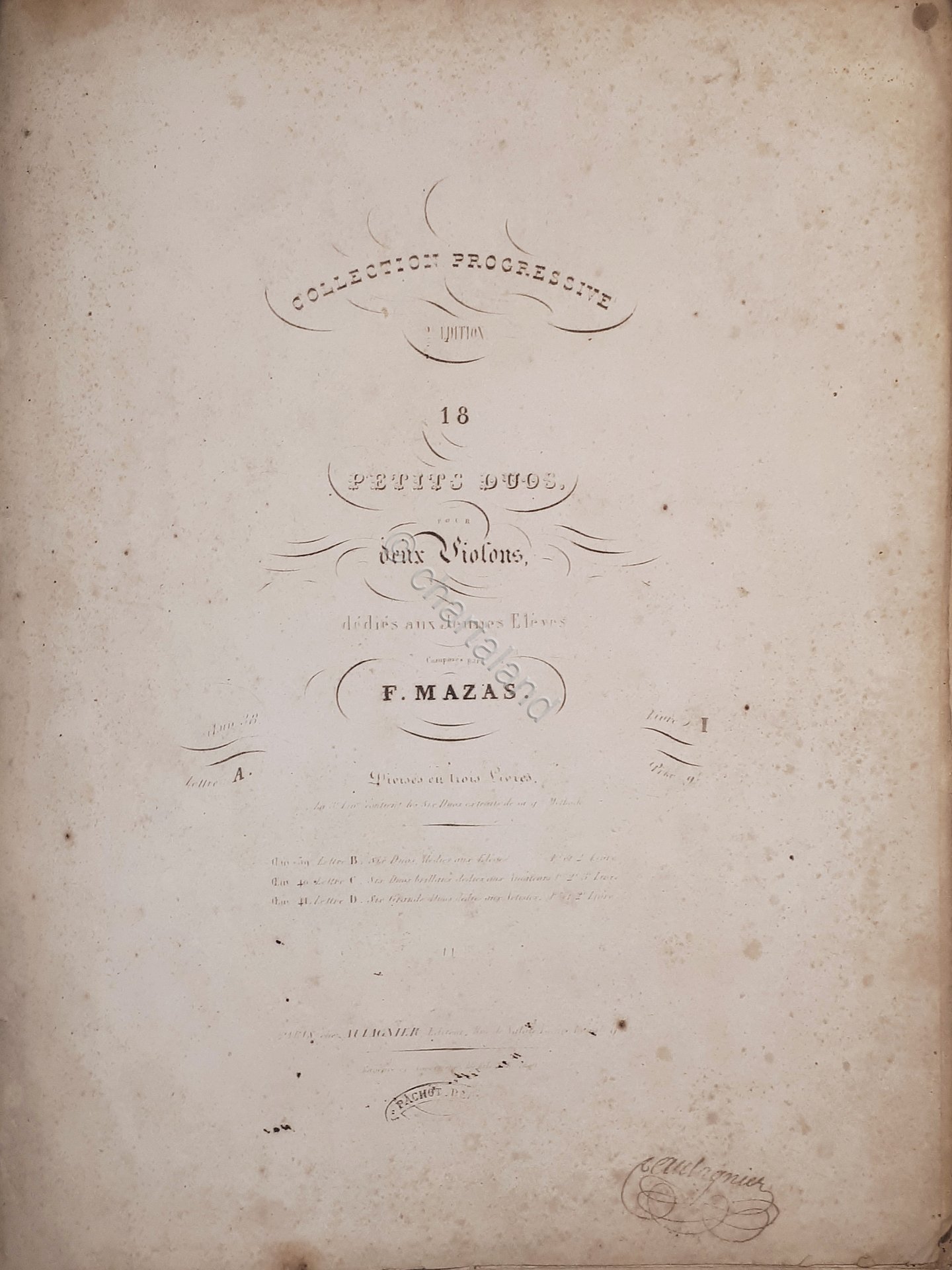 Spartiti - Petits Duos pour Deux Violons par F. Mazas Pagine - 15 Copertina morbida Condizioni buone
