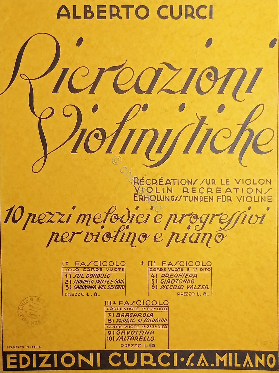 Spartiti - Preghiera per Violino e Piano di Alberto Curci - 1936 Formato grande. Pagine - 12 Copertina morbida. Condizioni buone come da foto.