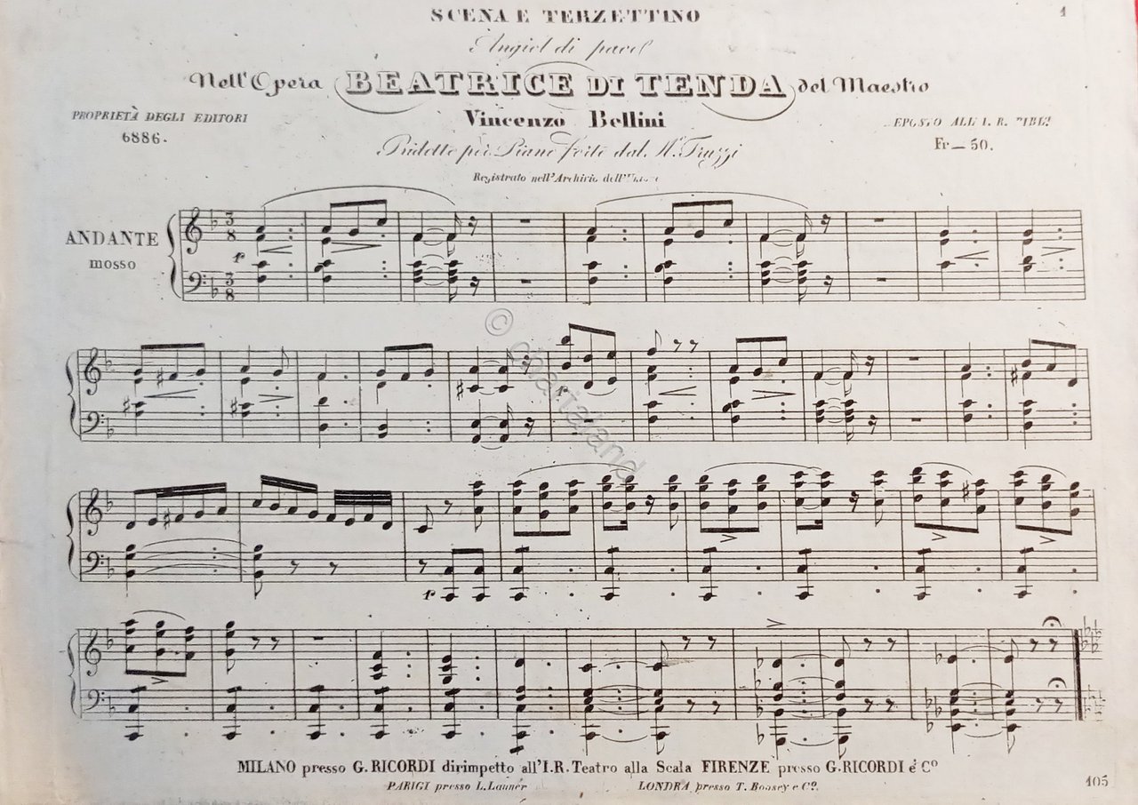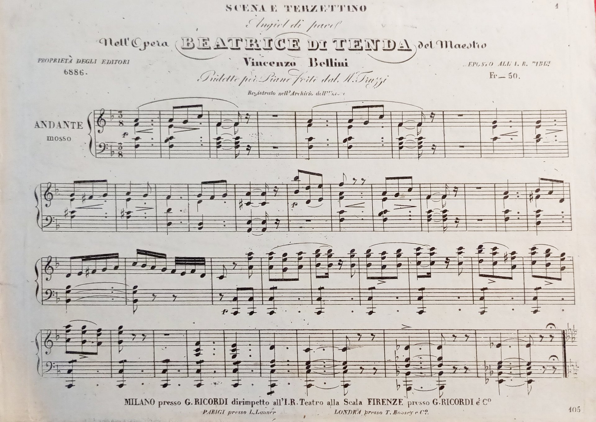 Spartiti - Scena e Terzettino nell'Opera Beatrice di Tenda di V. Bellini - Piano