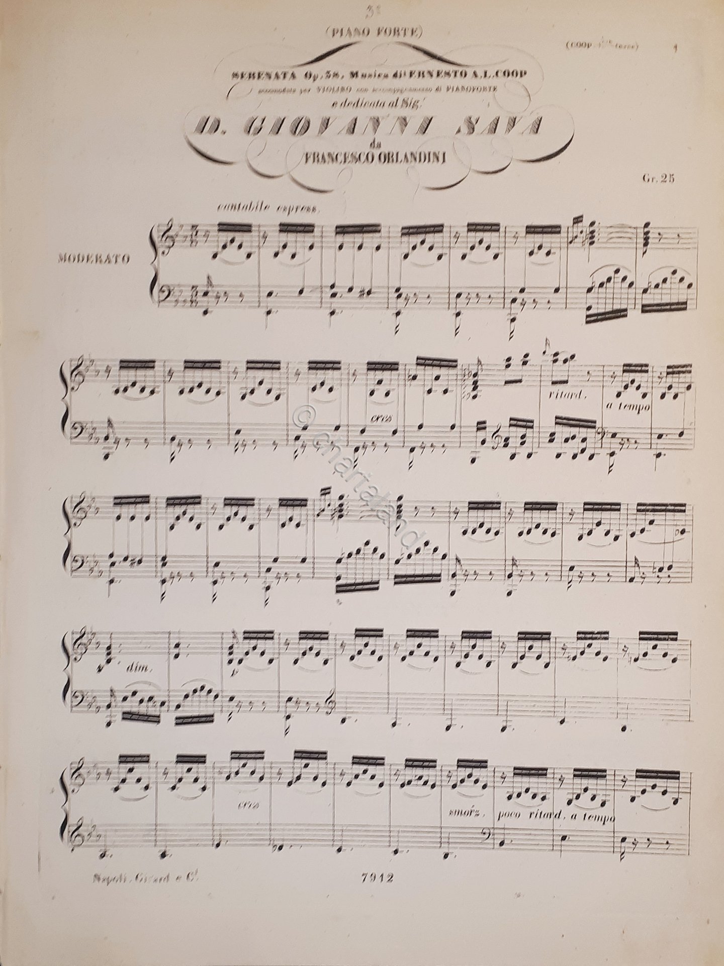 Spartiti - Serenata Op. 38 per Pianoforte di E. A. L. Coop
