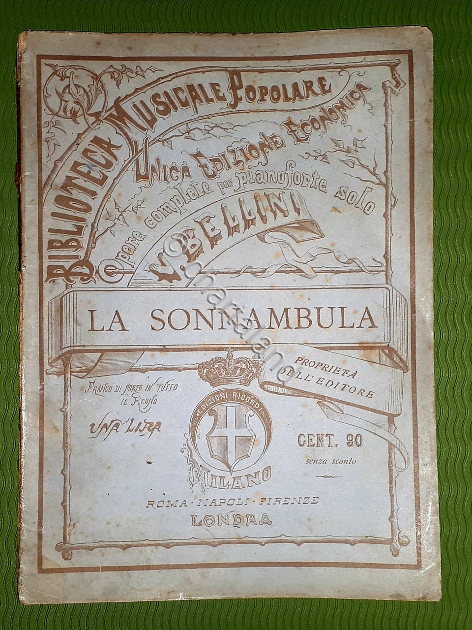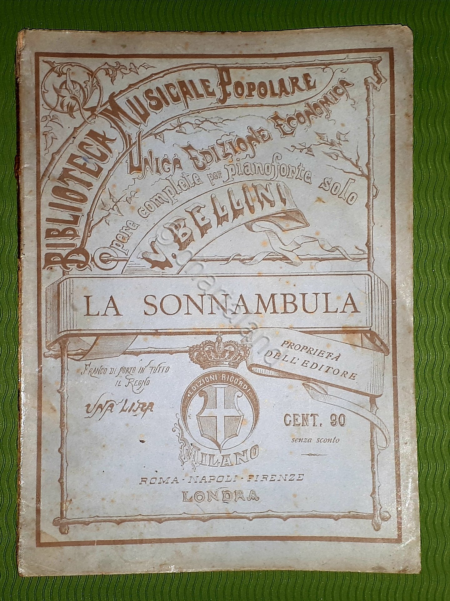 Spartito - La Sonnambula per Pianoforte di Vincenzo Bellini - 1875 ca. Pagine - 80 F. G. Copertina morbida Condizioni buone come da foto con piccola mancanza alla copertina posteriore