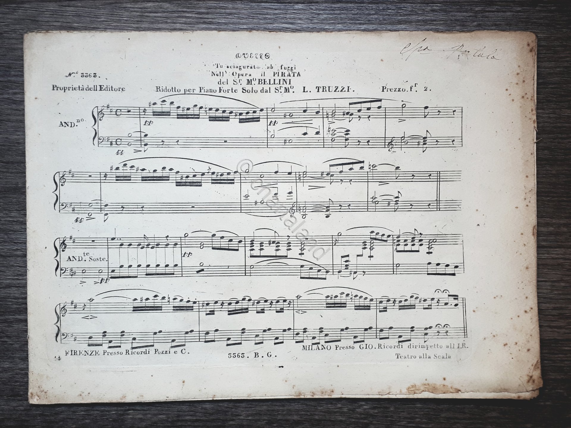 Spartito - Tu sciagurato ah fuggi nell'Opera Pirata - V. Bellini - 1840 ca. | Libri antichi e moderni |