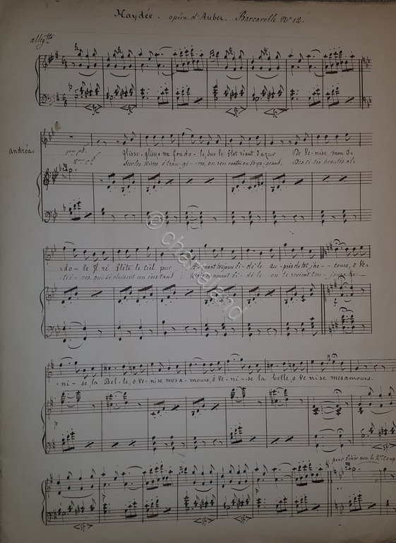 Spartito Manoscritto - Haydee - Opera di Auber - Barcarolle N. 12 - Secolo XIX | Libri antichi e moderni |