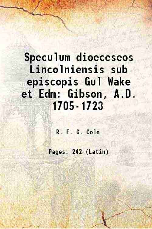 Speculum dioeceseos Lincolniensis sub episcopis Gul Wake et Edm: Gibson, A.D. 1705-1723 1913 | Libri antichi e moderni | R. E. G. Cole