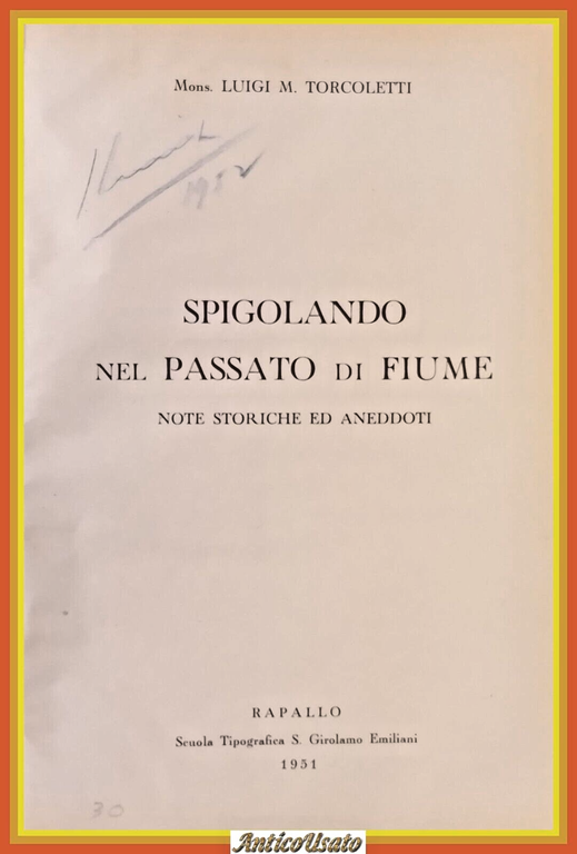 SPIGOLANDO NEL PASSATO DI FIUME, note storiche e aneddoti di Mons. Luigi M. Torcoletti.