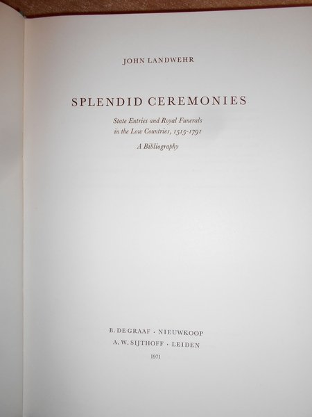 SPLENDID CEREMONIES. State Entries and Royal Funerals in the Low Countries, 1515-1792. A Bibliography | Libri antichi e moderni | John, Landwehr