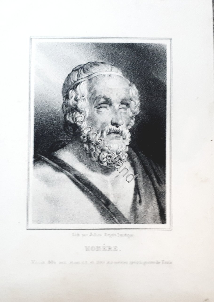 Stampa d'epoca - Omero è il nome con cui è identificato storicamente il poeta greco autore dell'Iliade e dell'Odissea, i due massimi poemi epici della letteratura greca - Secolo XVIII Condizioni buone come da foto Dimensioni 13 x 9