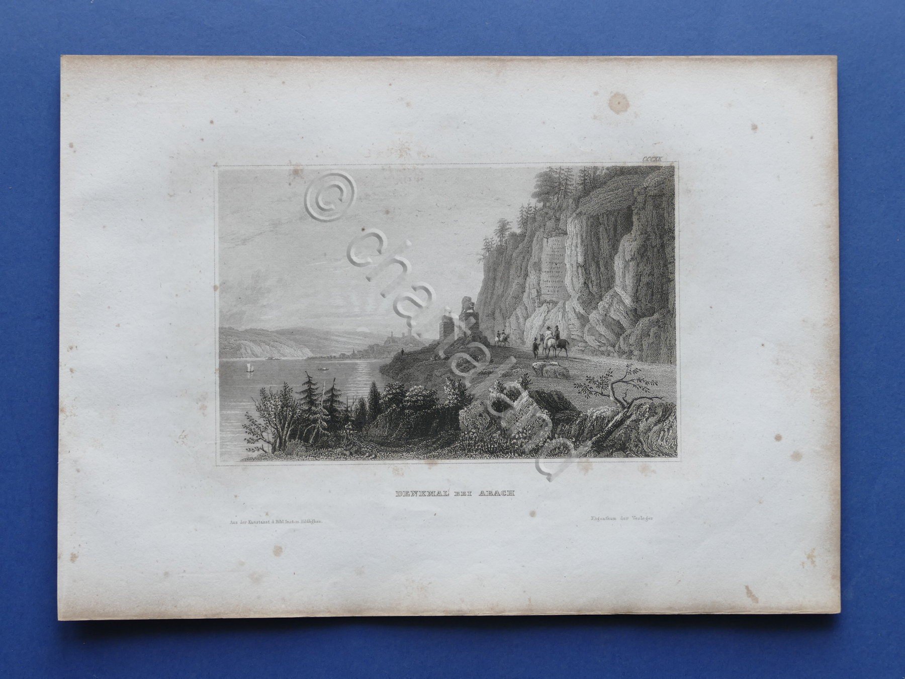 Stampa d'epoca metà '800 Denkmal bei Abach - Monumento leoni presso Abach Dimensioni foglio: 18 x 25 cm ca. - Dimensioni stampa: 9,5 x 15 cm ca. Buone condizioni. Piccole tracce di foxing naturale, come da foto.