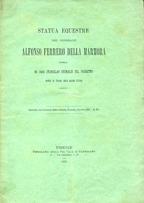 Statua equestre del generale Alfonso Ferrero Della Marmora opera del Conte Stanislao Grimaldi Del Poggetto eretta in Torino nella piazza Bodoni. Estratto dal Giornale Arte e Storia, Firenze, Ottobre 1991, n. 22