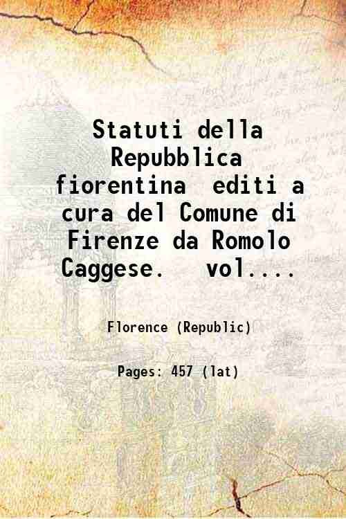 Statuti della Repubblica fiorentina editi a cura del Comune di Firenze da Romolo Caggese. vol.2. Volume 2 1921
