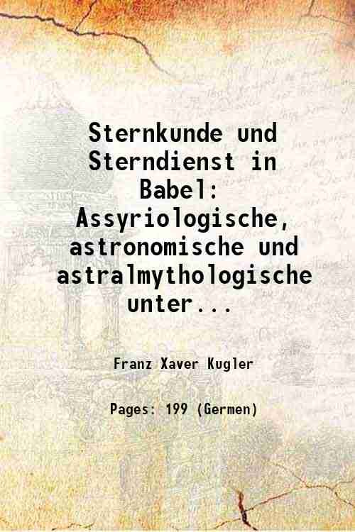 Sternkunde und Sterndienst in Babel Assyriologische, astronomische und astralmythologische untersuchungen Volume 3 1924 | Libri antichi e moderni | Franz Xaver Kugler