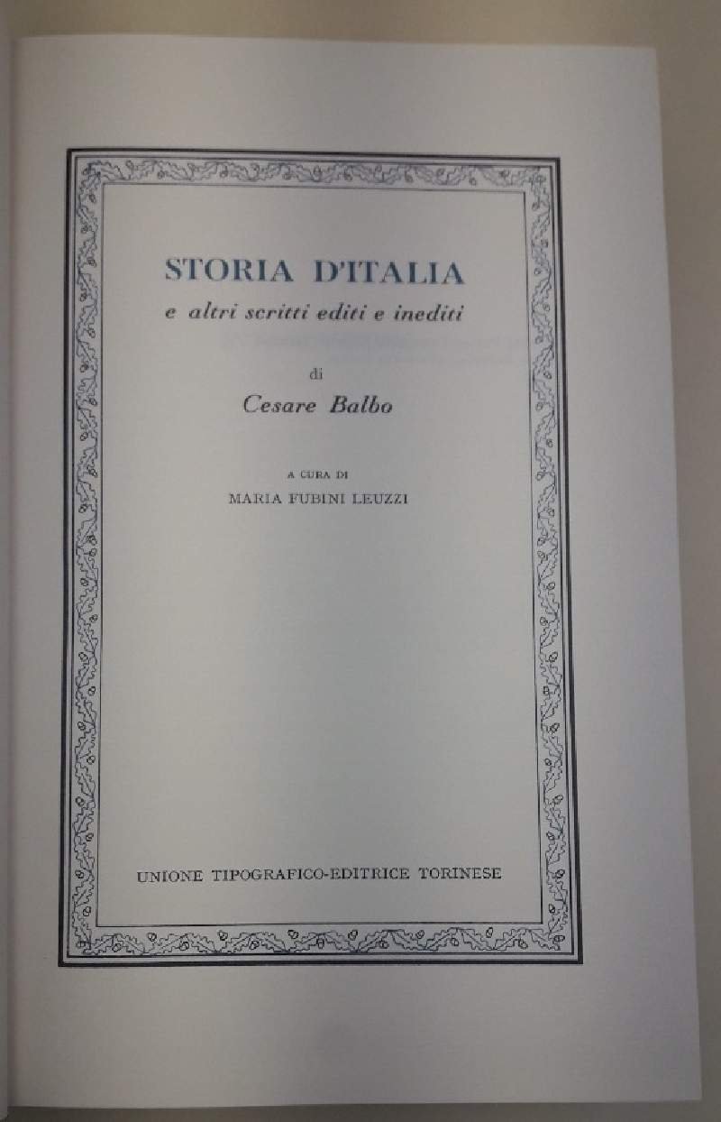 STORIA D'ITALIA E ALTRI SCRITTI EDITI E INEDITI DI CESARE BALBO(1984)