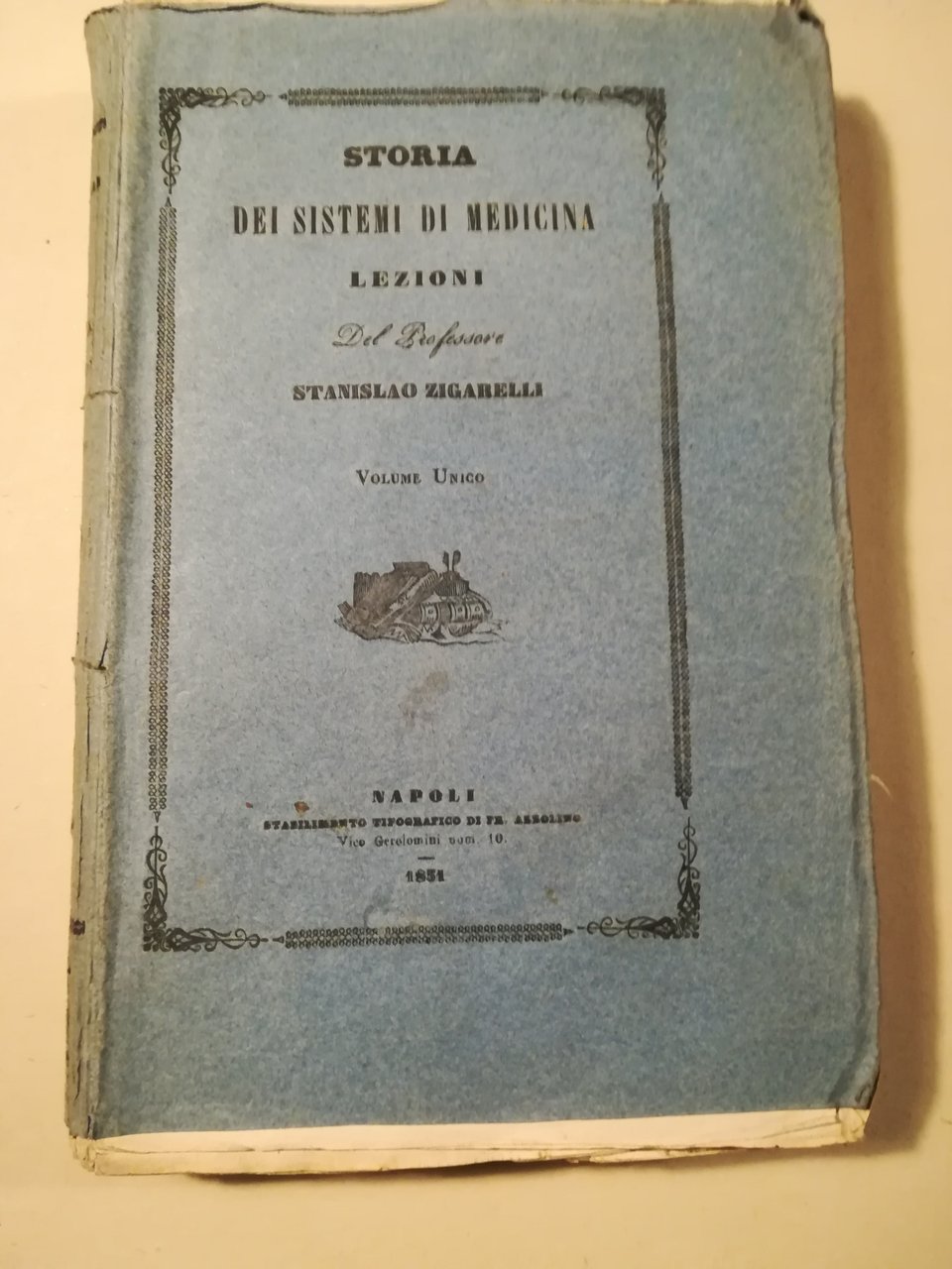 Storia dei Sistemi di Medicina. Lezioni del dottor Stanislao Zigarelli professore privato di medicina, aiutante alla cattedra e direzione di materia medica della Regia Università degli studi di Napoli [...] Volume unico | Libri antichi e moderni | ZIGARELLI, Stanislao