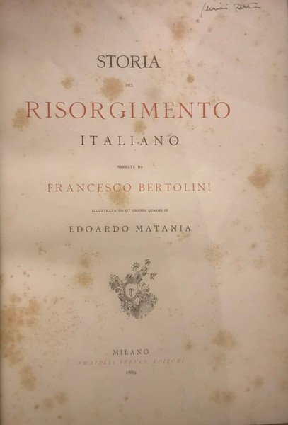 Storia del Risorgimento Italiano narrata da Francesco Bertolini. Illustrata da 97 grandi quadri di Edoardo Matania | Libri antichi e moderni | Bertolini Francesco