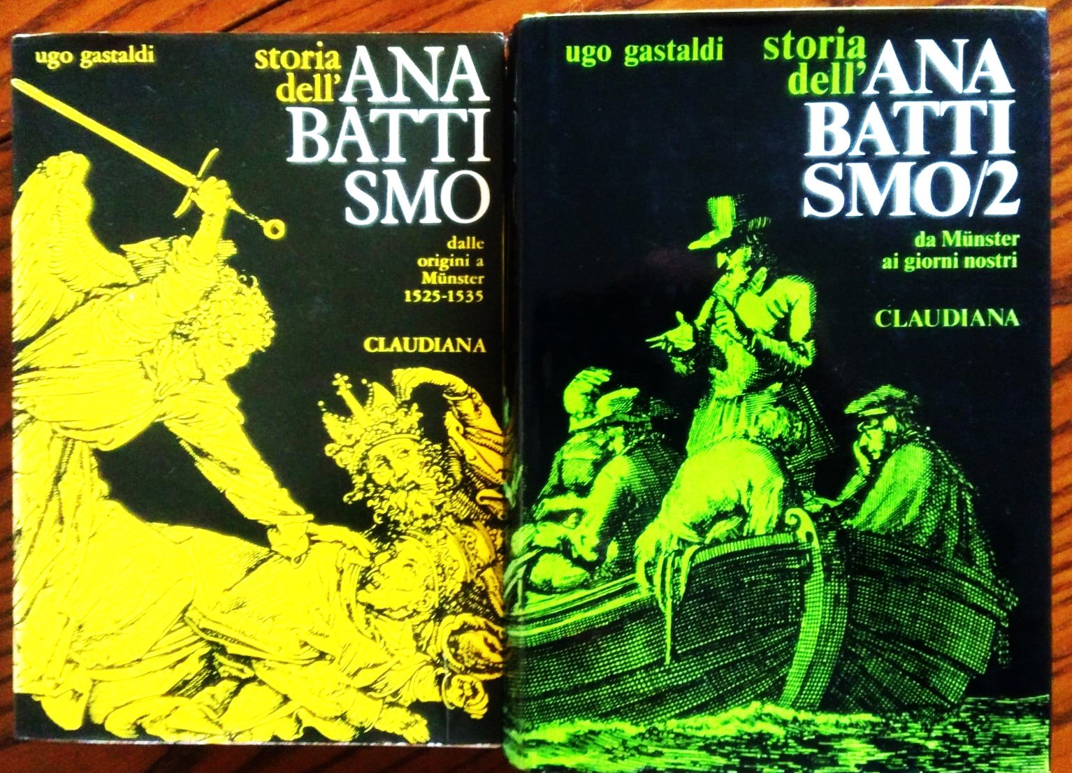 Torino, Claudiana, 1972 - 1981. 8°, due volumi. Volume 1 Dalle origini a Munster 1525-1535, pp. 650, 77 illustrazioni fuori testo; Volume 2 Da Munster ai giorni nostri, pp. 855, 19 cartine e 52 illustrazioni fuori testo. Il primo volume è in brossura con sovracoperta, il secondo in tela editoriale con sovracoperta. Il primo volume presenta sottolineature a matita non deturpanti alle prime 130 pagine.
