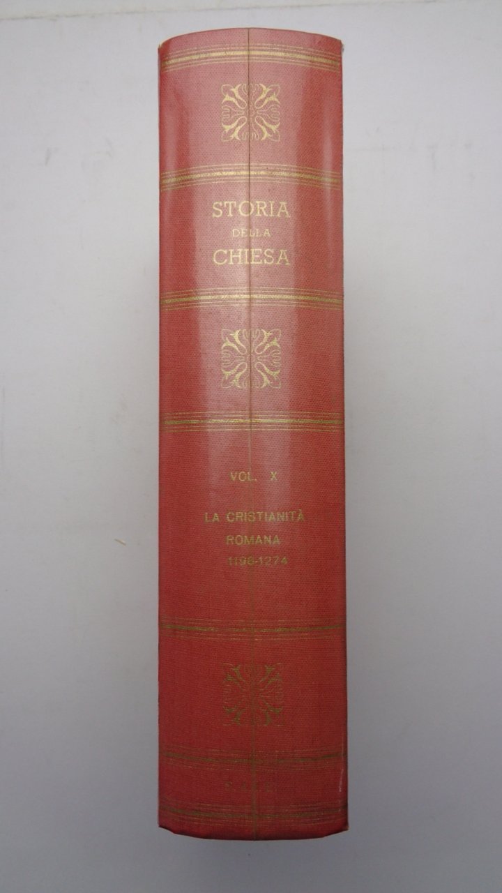 Un volume (24 cm) di 760 pagine, con alcune illustrazioni fuori testo. Tela editoriale rossa con medaglione dorato e titolo al dorso, volume X dell'opera Storia della Chiesa. Buone condizioni.