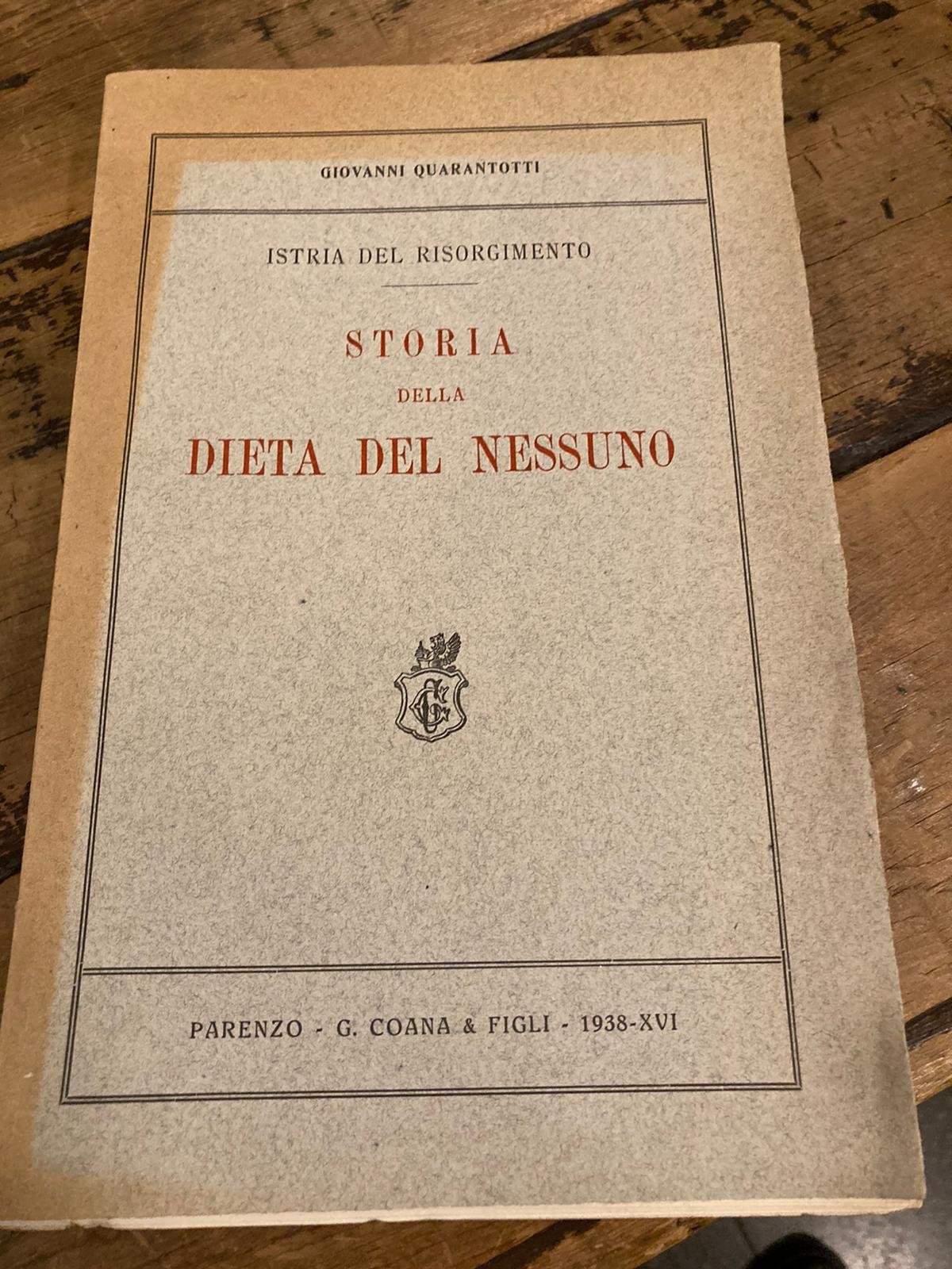 In-8° grande (25x17 cm), brossura editoriale con titoli al dorso e al piatto anteriore. Pp 215, (1), tavole bianco e nero fuori testo. Lievi aloni da esposizione solare al dorso (con piccole mancanze alla cuffia inferiore) alla testa e ai margini interni dei piatti, ma più che buon esemplare a fogli chiusi. Edizione originale di questo dettagliato resoconto della cosidetta 'dieta del nessuno' del 6 aprile 1861 evento collaterale e spesso dimenticato del nostro Risorgimento e dell'Unità d' Italia testimonianza della volontà istriana di aderire a quest 'ultima contra i dominatori austriaci.