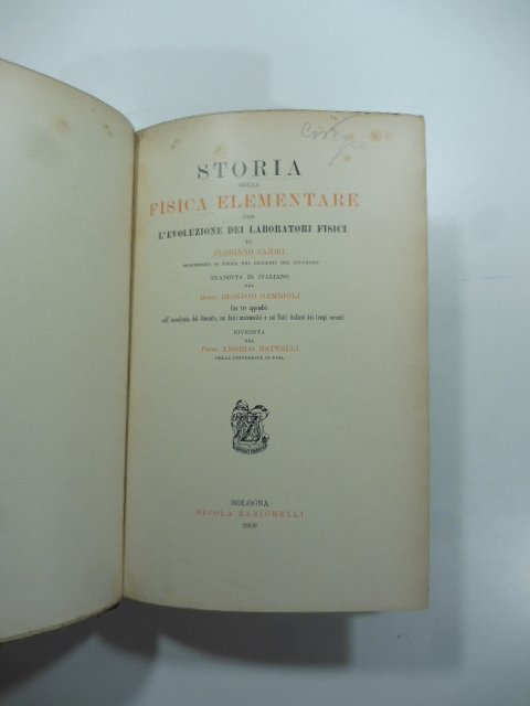 Storia della fisica elementare con l'evoluzione dei laboratori fisici | Libri antichi e moderni | Floriano Cajori, Angelo Battelli