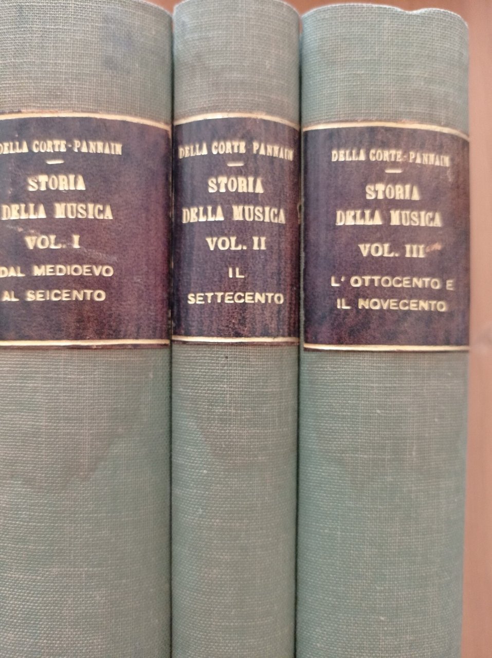 RISTAMPA DELLA SECONDA EDIZIONE 1942. Composto da tre volumi. Vol. I di pp. 678 DAL MEDIOEVO AL SEICENTO con 33 tavole, 310 figure e 326 citazioni musicali. Copertina rigida ombrata con caratteri in oro impressi sul dorso, pagine ingiallite con lievi fioriture nelle guardie. Vol. II di pp. 1101 IL SETTECENTO con 10 tavole, 248 figure e 180 citazioni musicali. Copertina rigida ombrata con caratteri in oro impressi sul dorso e pagine ingiallite. Vol. III di pp. 1720 L' OTTOCENTO E IL NOVECENTO con 14 tavole, 524 figure e 120 citazioni musicali. Copertina rigida ombrata con caratteri in oro impressi sul dorso e pagine ingiallite. Buono (Good) .