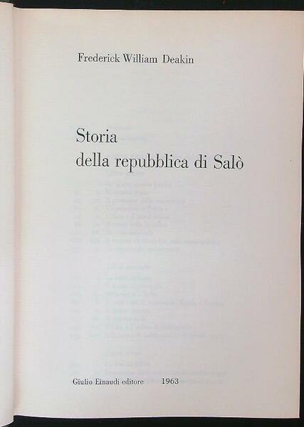 Storia della Repubblica di Salo' | Libri antichi e moderni | Deakin, Frederick W.