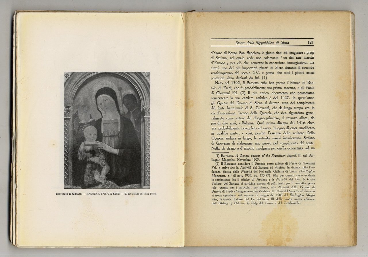 Siena, Libreria Editrice Senese, 1926 - 1933, volumi 2, in-8, il primo in legatura coeva in mezza tela, titolo in oro al dorso; il secondo in brossura editoriale: pp. [4], 261, [3], con 26 illustrazioni su 14 tavole f.t. - 234, [2], con 71 illustrazioni su 36 tavole f.t. Qualche raro e lievissimo segno di adesione fra le tavole del secondo volume. Condizioni decisamente buone.