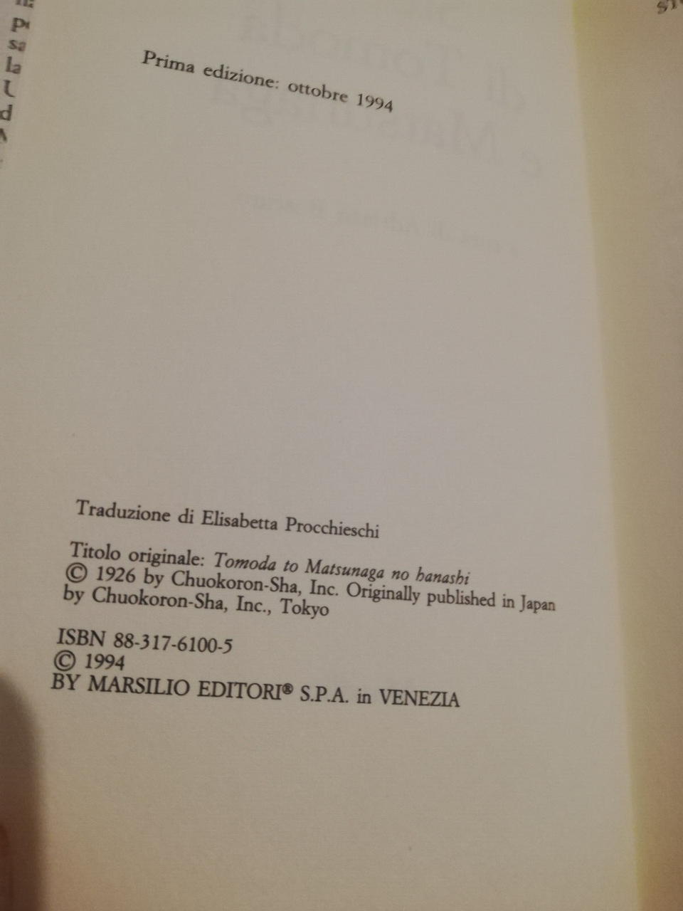 Storia di Tomoda e Matsunaga, Tanizaki Jun'ikiro, Marsilio | Libri antichi e moderni |